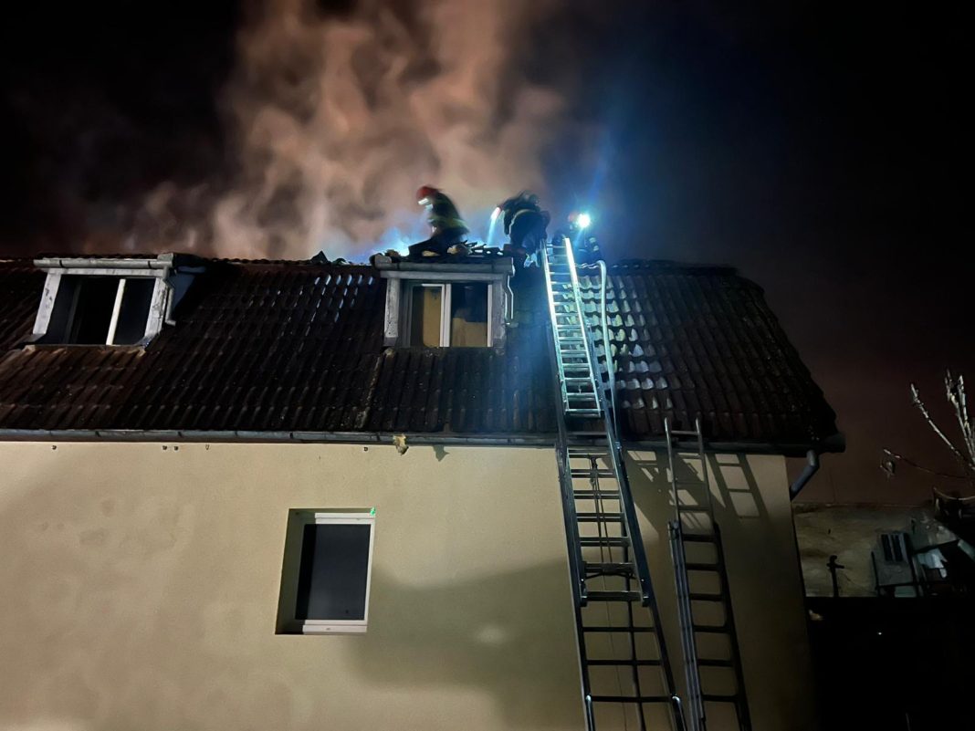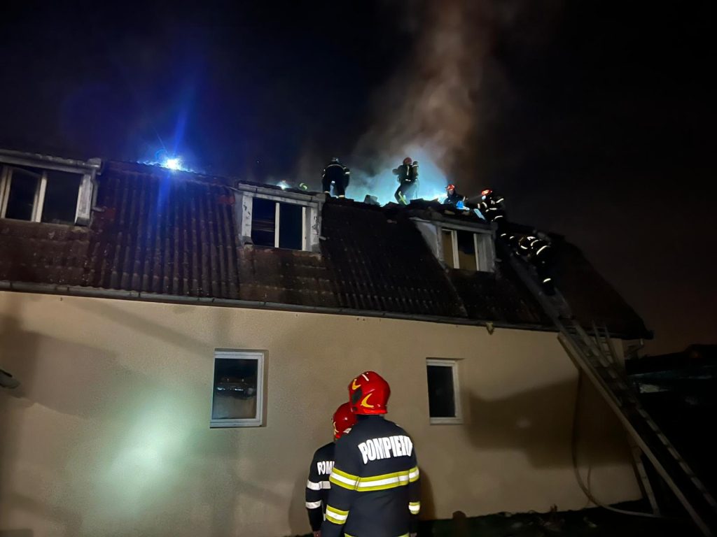 Primele informații arată că focul se manifestă la acoperișul casei, pe o suprafață de aproximativ 100 de metri pătrați. Pompierii lucrează în acest moment pentru localizarea și stingerea incendiului, intervenția fiind în plină desfășurare.