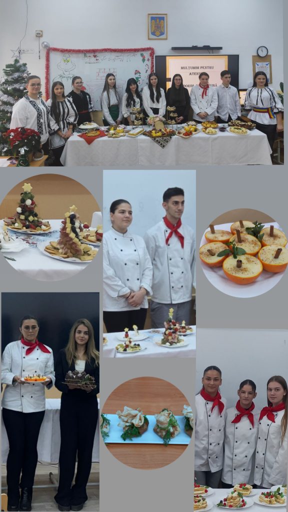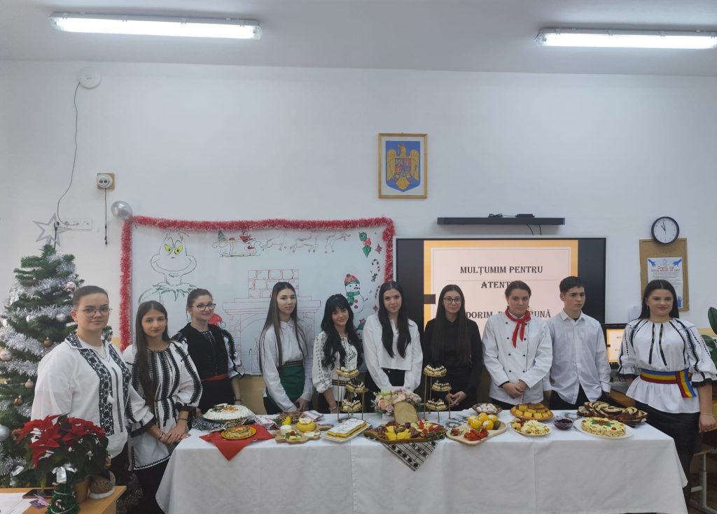 Proiectul a fost structurat în trei secțiuni – trei moduri de a spune aceeași poveste: iubirea pentru gust: Preparate tradiționale (unde elevii au readus în prim-plan rețete autentice, metode clasice de preparare și gusturi care păstrează în ele identitatea locului. Aici s-a simțit cel mai clar respectul pentru rădăcini și pentru ceea ce înseamnă „gustul de acasă”); 2. Preparate inovative (secțiunea în care talentul culinar s-a întâlnit cu imaginația, iar rezultatul a fost pe măsură: reinterpretări originale ale preparatelor tradiționale, combinații curajoase și soluții moderne care au arătat că tradiția poate fi reinventată fără să-și piardă esența). 3. Fantezii culinare de sărbători (un spațiu în care farfuriile au devenit adevărate „scene” culinare. Aici, fiecare echipă a încercat să transmită un mesaj, o atmosferă, o emoție – exact ca într-o poveste de iarnă spusă prin arome).