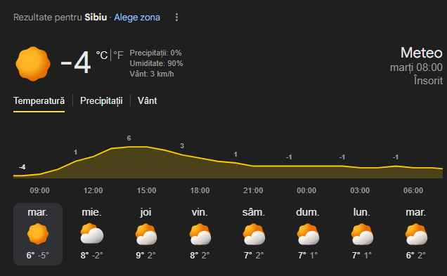 Sibiul a trecut prin cea mai friguroasă noapte a iernii de până acum. Temperaturile în noaptea de 15 decembrie spre dimineața de astăzi, 16 decembrie, coborând până la minus 5 grade Celsius.