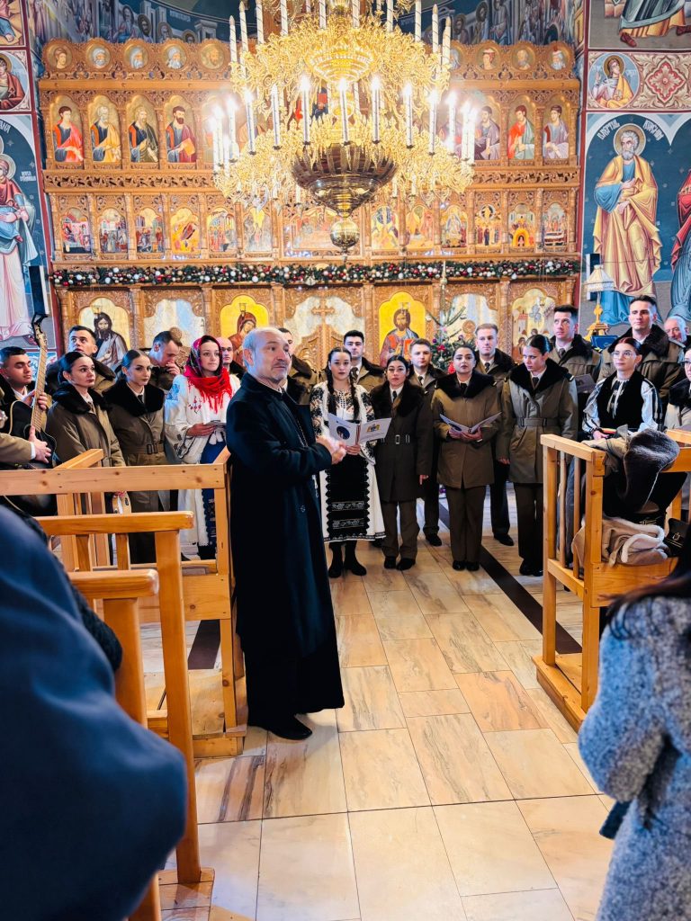 Deși evenimentul s-a desfășurat în apropierea sediului Primăriei comunei, corul elevilor militari a dus în Biserica de jos vestea Nașterii Mântuitorului Iisus Hristos, transformând lăcașul de cult într-un spațiu plin de emoție și lumină.