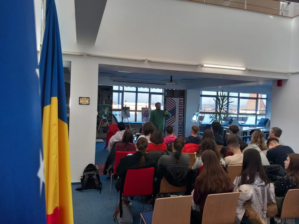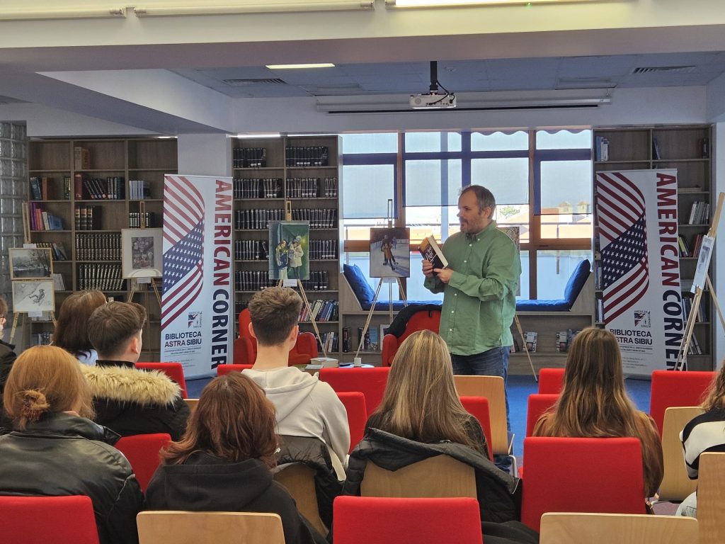 Luni, 15 decembrie 2025, American Corner din cadrul Bibliotecii Astra Sibiu a găzduit ultimele două sesiuni ale proiectului „Zilele Literaturii Americane”, un eveniment dedicat tinerilor pasionați de literatură, poezie și proză, precum și dialogului cultural și valorilor educaționale americane.
