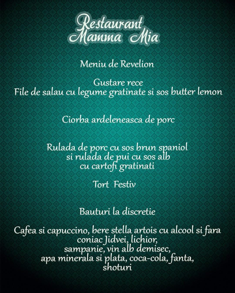 Restaurantul Mamma Mia pregătește un Revelion 2026 spectaculos, dedicat celor care vor să întâmpine noul an cu muzică live, distracție și un meniu complet, într-o atmosferă elegantă și energică.