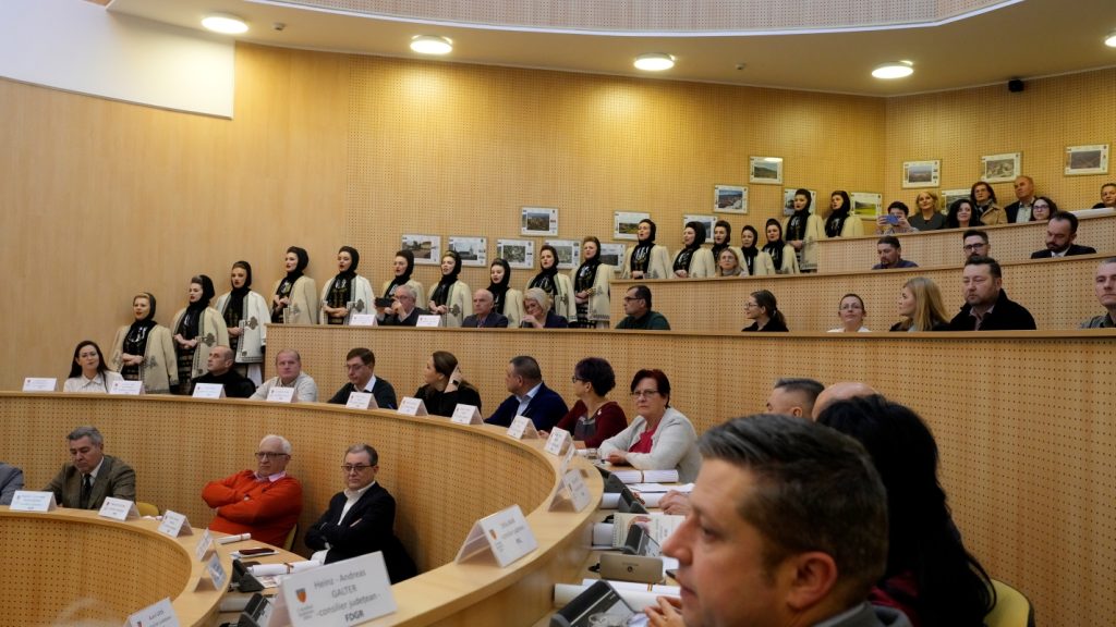 Joi, 18 decembrie, a avut loc ultima şedinţă ordinară din acest an a Consiliului Judeţean Sibiu. În debutul întâlnirii a fost păstrat un moment de reculegere în memoria victimelor evenimentelor din decembrie 1989, iar Ansamblul „Junii Sibiului”, condus de Silvia Macrea, a adus colinde şi urări de sănătate şi belşug.