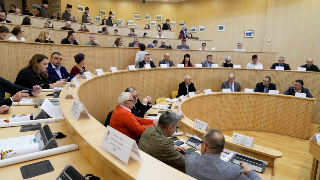 Joi, 18 decembrie, a avut loc ultima şedinţă ordinară din acest an a Consiliului Judeţean Sibiu. În debutul întâlnirii a fost păstrat un moment de reculegere în memoria victimelor evenimentelor din decembrie 1989, iar Ansamblul „Junii Sibiului”, condus de Silvia Macrea, a adus colinde şi urări de sănătate şi belşug.
