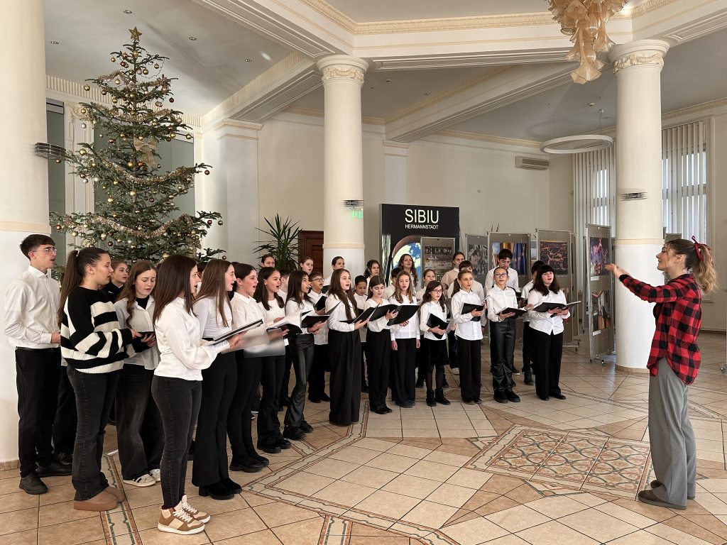 Rând pe rând, instituția a primit vizita Corului Academiei Forțelor Terestre „Nicolae Bălcescu”, a elevilor clasei I de la Școala Gimnazială nr. 1, a reprezentanților Asociației „Ridică-te și umblă”, precum și a elevilor Școlii Militare de Maiștri Militari și Subofițeri pentru Comunicații, Tehnologia Informației și Apărare Cibernetică. Atmosfera de sărbătoare a fost întregită de colindele interpretate de trei coruri ale Liceului de Artă, de membrii Clubului de Turism și Ecologie Montană Nordic Grup Sibiu, de elevii claselor II–IV de la Școala Gimnazială nr. 2 și de copiii de la Palatul Copiilor.
