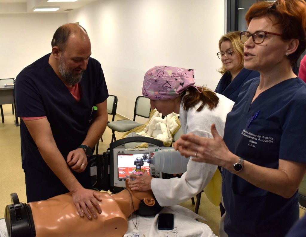 Medicii Spitalului Clinic Militar de Urgență „Dr. Alexandru Augustin” Sibiu au participat, în zilele de 10 și 18 decembrie 2025, la sesiuni de instruire privind resuscitarea de bază și avansată a pacientului adult, organizate de dr. Melinda Aron-Gál, medic primar medicină de urgență și instructor certificat al Consiliului European de Resuscitare (ERC), din cadrul Direcției Medicale a Ministerului Apărării Naționale.