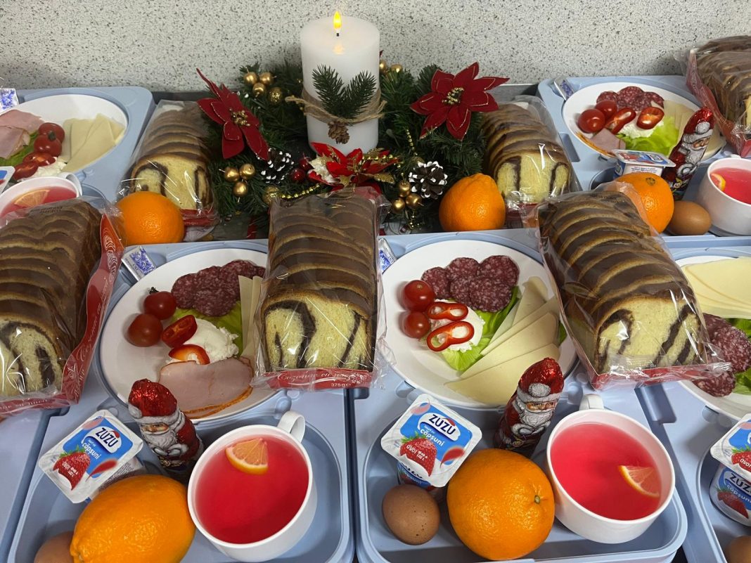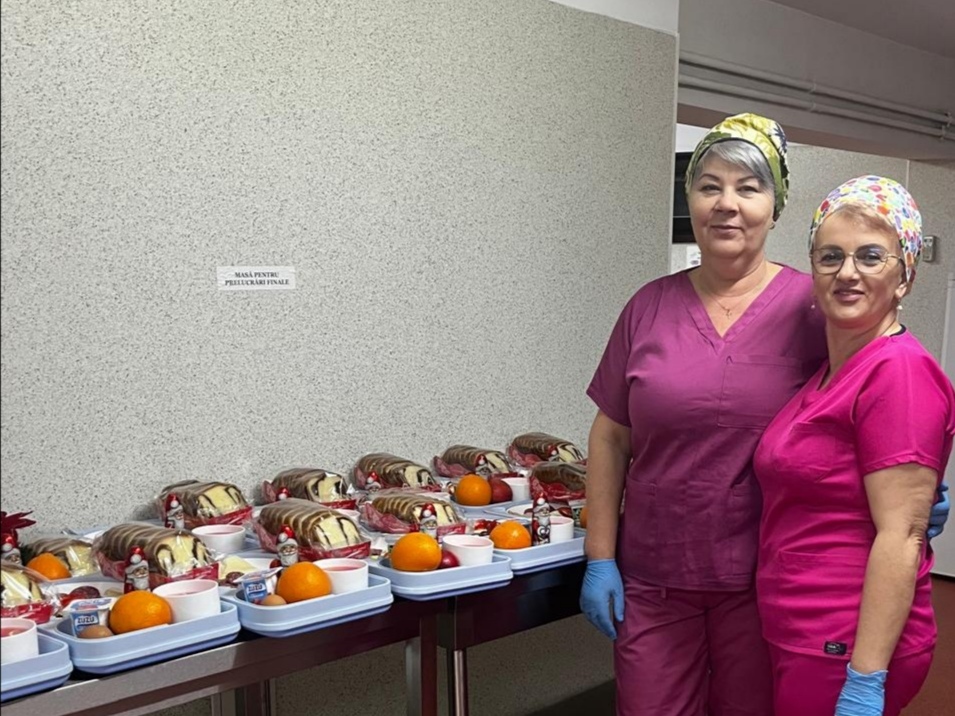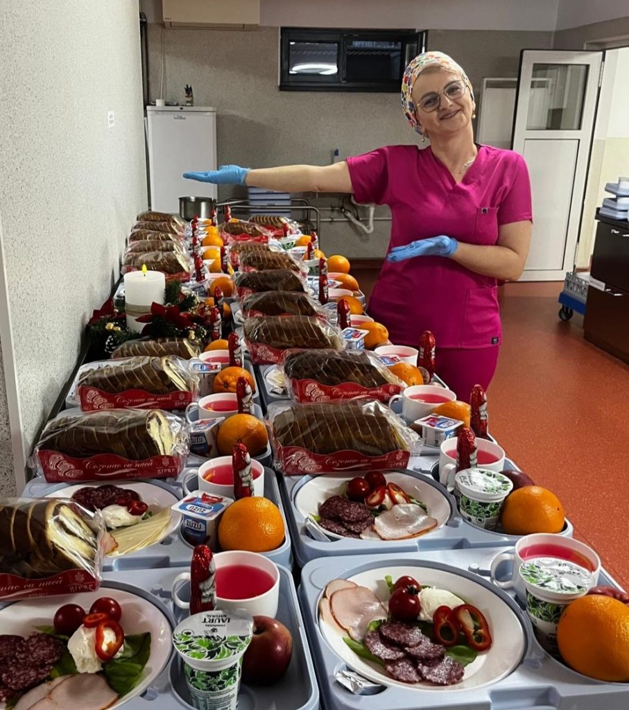 Meniul de Crăciun, pregătit cu grijă în blocul alimentar al spitalului, a inclus sarmale, cozonac, portocale și figurine din ciocolată, oferite tuturor pacienților, în limita recomandărilor medicale. Masa festivă a fost gândită pentru a aduce un plus de confort și normalitate celor care au fost nevoiți să își petreacă sărbătorile internați.