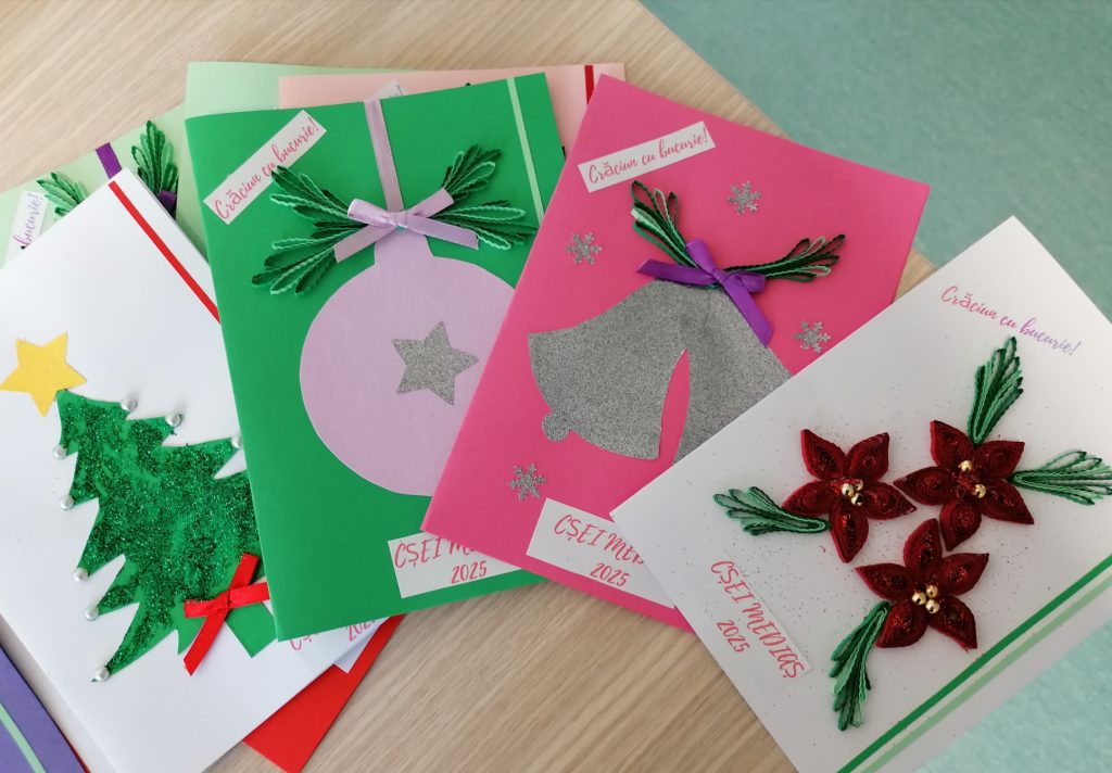 Pe lângă mâncarea specială, pacienții au primit și felicitări de Crăciun realizate manual de elevii centrelor de educație incluzivă din județul Sibiu. Mesajele copiilor au adus emoție și bucurie, fiind un gest de solidaritate și empatie față de persoanele internate în această perioadă.