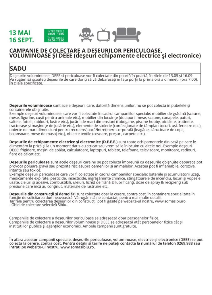 Prin această inițiativă, Primăria Sadu urmărește nu doar eficientizarea procesului de colectare, ci și educarea comunității în spirit ecologic, contribuind astfel la un mediu mai curat și mai sănătos pentru toți locuitorii.