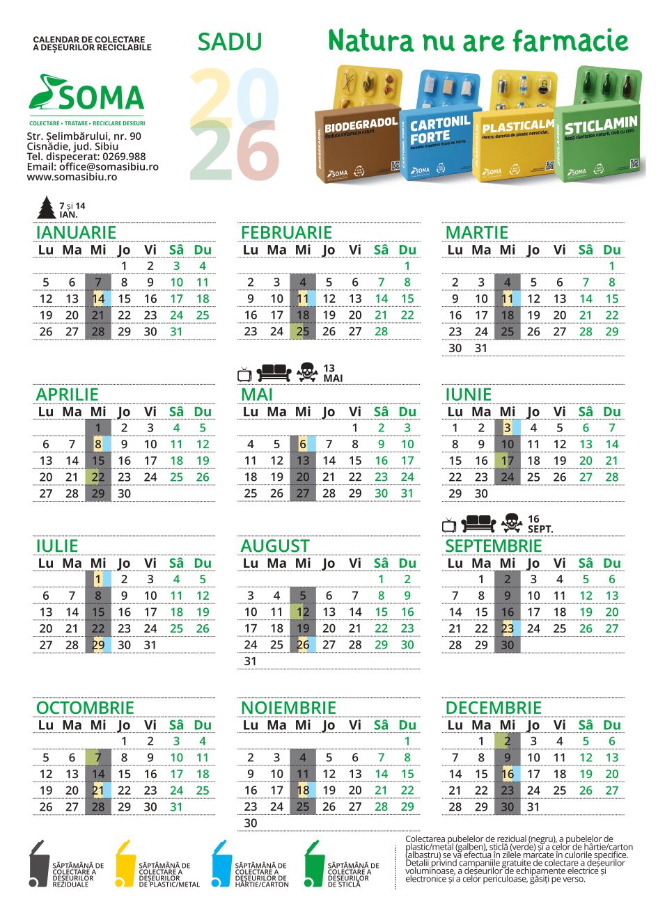 Primăria Comunei Sadu vine în sprijinul locuitorilor cu un anunț important pentru protejarea mediului. Autoritățile locale au publicat calendarul colectării deșeurilor reciclabile pentru anul 2026, invitând cetățenii să consulte programul și să participe activ la reciclarea responsabilă.