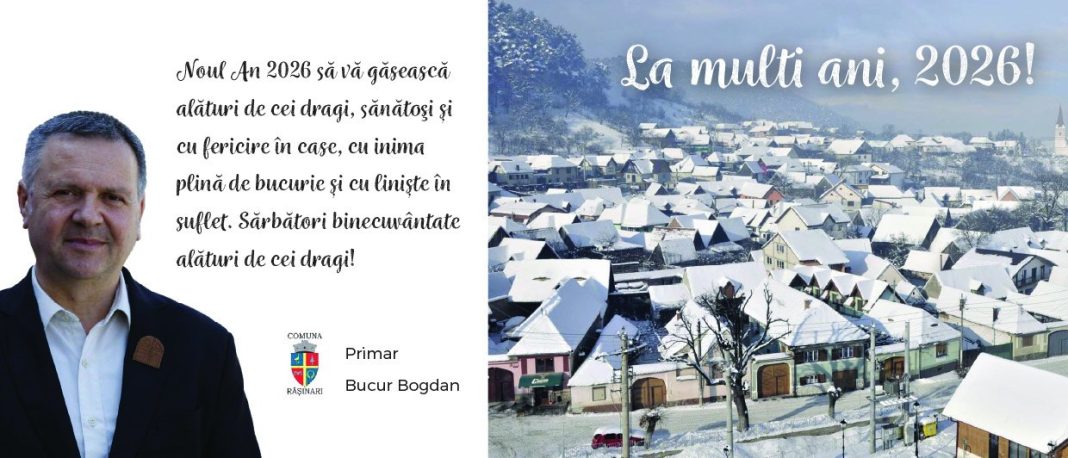 Urarea este însoțită de o imagine de iarnă a comunei Rășinari, simbol al tradiției, comunității și speranței pentru un an nou mai bun. Mesajul primarului vine ca un gând de recunoștință și apropiere față de cetățeni, la început de 2026.