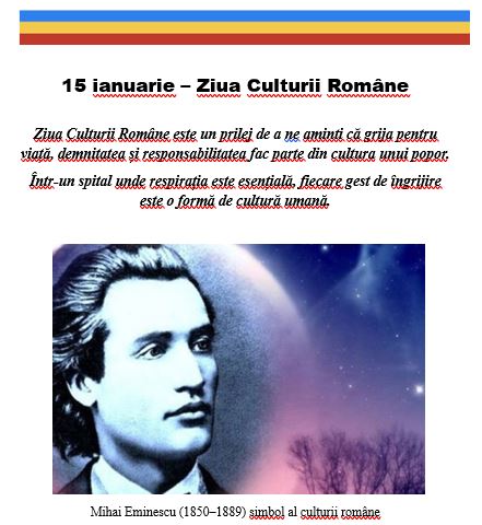 Spitalul de Pneumoftiziologie Sibiu a marcat Ziua Națională a Culturii, sărbătorită anual pe 15 ianuarie, printr-o inițiativă simbolică menită să evidențieze importanța valorilor culturale românești, chiar și într-un context medical.