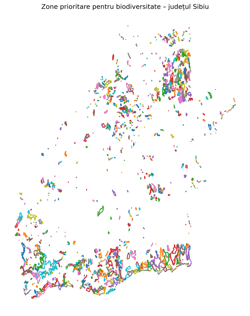 Conform bazei de date GIS transmise de Ministerul Mediului, suprafața totală propusă ca zonă prioritară pentru biodiversitate în județul Sibiu este de 39.132,62 hectare, echivalentul a peste 390 de kilometri pătrați. Zonele sunt reprezentate pe harta oficială pusă la dispoziția Sibiu Independent și sunt distribuite în mai multe poligoane, cu dimensiuni și localizări diferite.