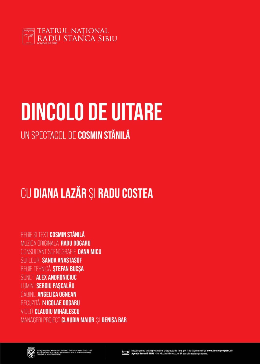 Teatrul Național „Radu Stanca” Sibiu (TNRS) invită publicul la avanpremiera și premiera spectacolului „Dincolo de uitare”, o nouă producție semnată de regizorul Cosmin Stănilă. Avanpremiera va avea loc în 7 februarie, iar premiera este programată pentru 8 februarie, de la ora 17:00, la Sala Studio.