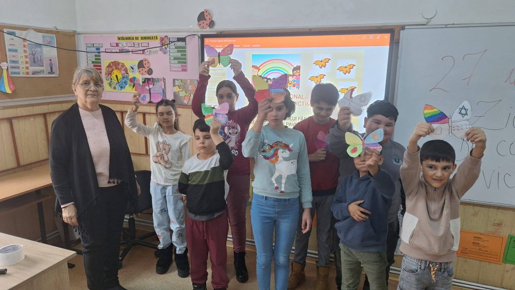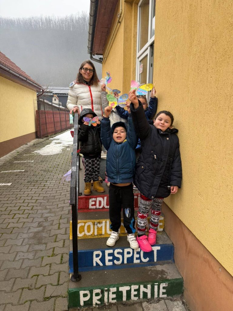 Sub coordonarea doamnei profesor Crasnoveț Mihaela, alături de doamna învățătoare Cristea Ana și doamna educatoare Muzsnai Melinda, copiii au realizat fluturi colorați, pe ale căror aripi au așternut gânduri despre pace, bunătate și libertate. Fiecare fluture a devenit o promisiune simbolică pentru un viitor fără ură și discriminare.