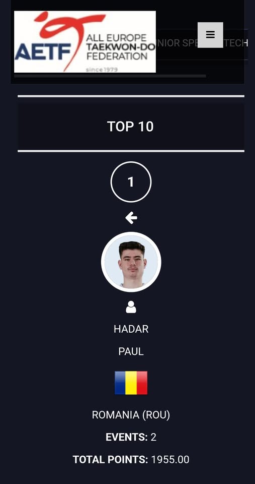 Cel mai valoros sportiv junior la proba de tehnici speciale din Europa, la Taekwon-Do ITF, este sportivul Paul Hadar. Acesta a acumulat până în prezent 1955 de puncte, aflându-se la o distanță considerabilă de locul 2, care are cu 900 de puncte mai puțin. Sportivul este campion european și mondial în 2025.