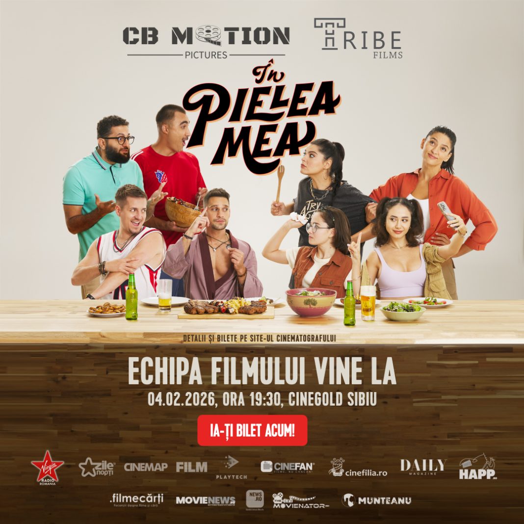 Publicul din Sibiu este invitat miercuri, 4 februarie, la o proiecție specială a comediei „În pielea mea”, care va avea loc la CineGold Promenada Mall, în prezența unei părți din echipa filmului. Actorii George Tănase, Sergiu Costache și Azaleea Necula, alături de regizorul Paul Decu, vor fi prezenți la întâlnirea cu spectatorii, programată de la ora 19:30, urmând ca proiecția filmului să înceapă la ora 20:00.