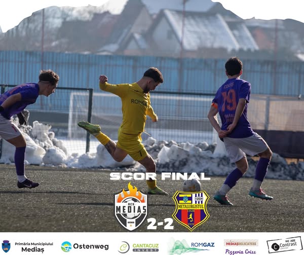 Golurile echipei din Mediaș au fost marcate de Gabriel Țala (min. 30) și Lucian Noian (min. 77).