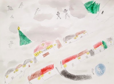 Pornind de la lectura versurilor, copiii din comunitate au fost invitați să-și transpună emoțiile și imaginația în desene realizate în alb-negru și acuarelă. Atmosfera primitoare a bibliotecii i-a purtat pe micii artiști pe ulițele satului tradițional românesc, iar pentru unii dintre ei experiența a însemnat o întoarcere emoționantă la vacanțele de iarnă petrecute la bunici, în peisaje albe ca-n povești.