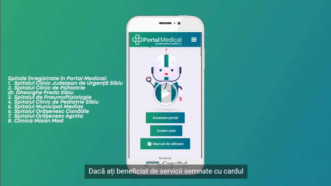 Platforma poate fi accesată la adresa: https://portalmedical.cjsibiu.ro/