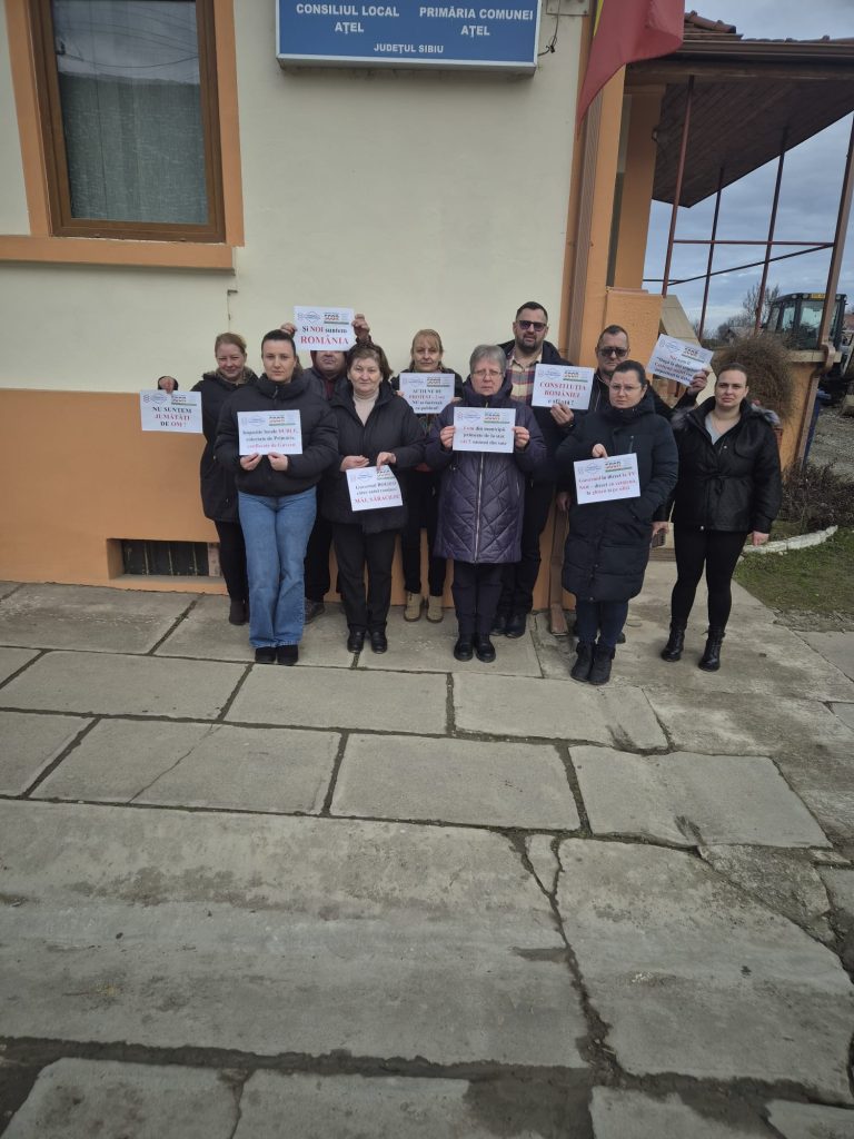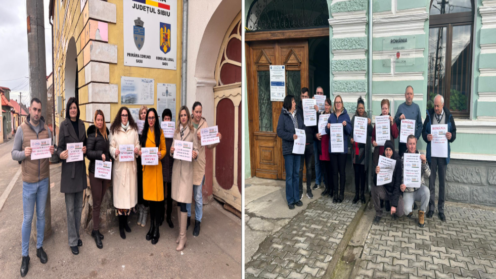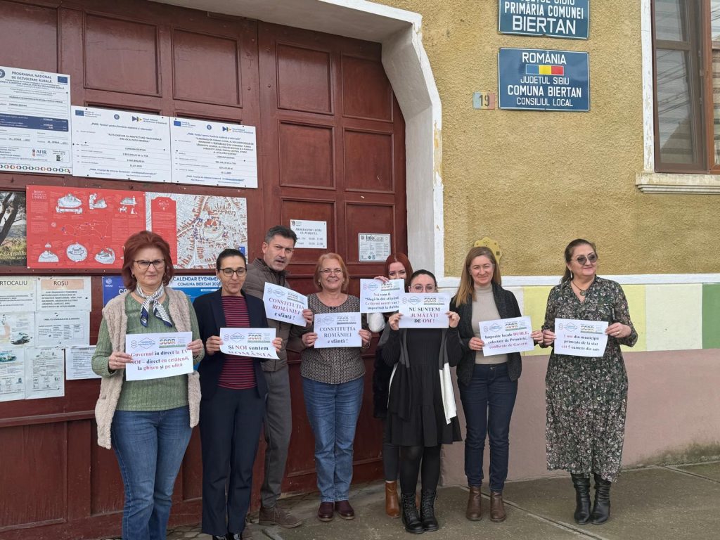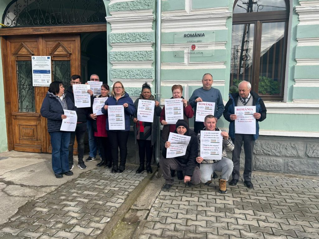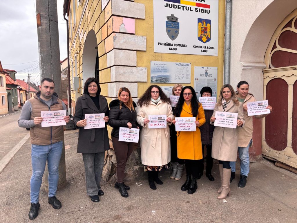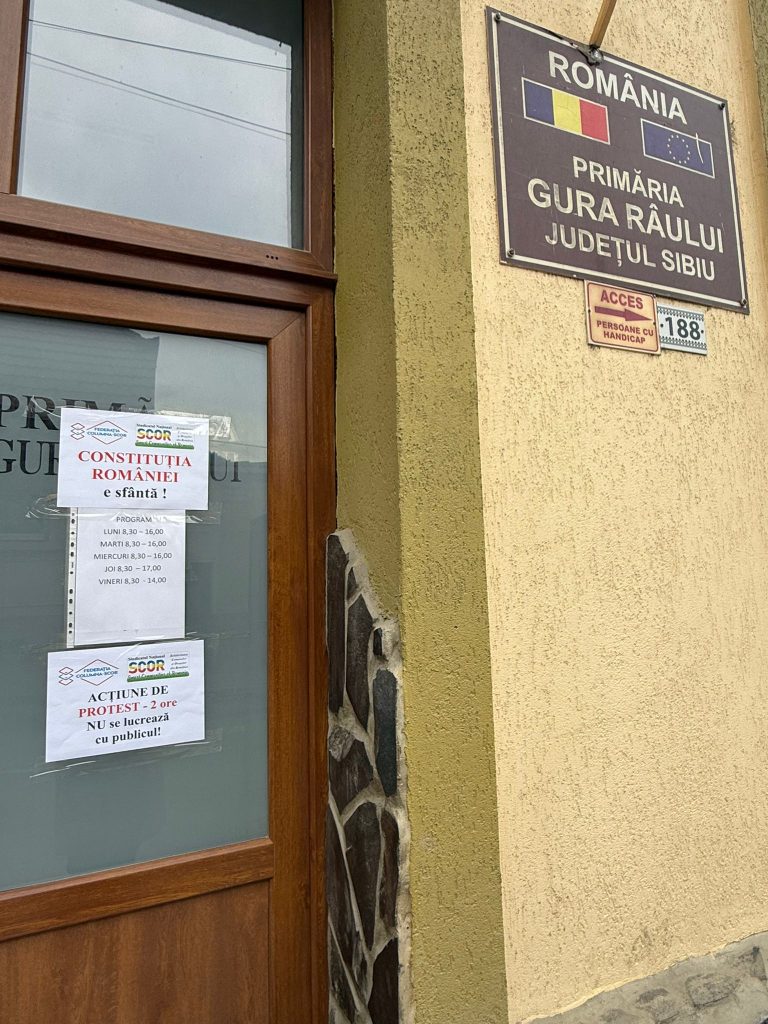 În mai multe localități din județul Sibiu, activitatea primăriilor a fost suspendată timp de două ore. Pe ușile instituțiilor din Gura Râului, Valea Viilor, Biertan, Ațel, Micasasa, Orlat, Iacobeni și Sadu au apărut afișe prin care cetățenii erau informați că funcționarii au intrat în grevă de avertisment.