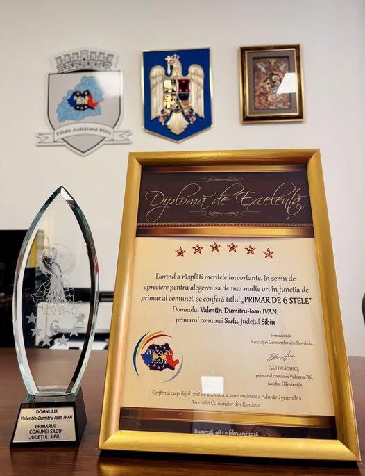 Primarul comunei Sadu, Valentin Ivan, a anunțat că a primit distincția „Primar de 6 Stele”, acordată de Asociația Comunelor din România, exprimându-și recunoștința față de comunitatea pe care o reprezintă.