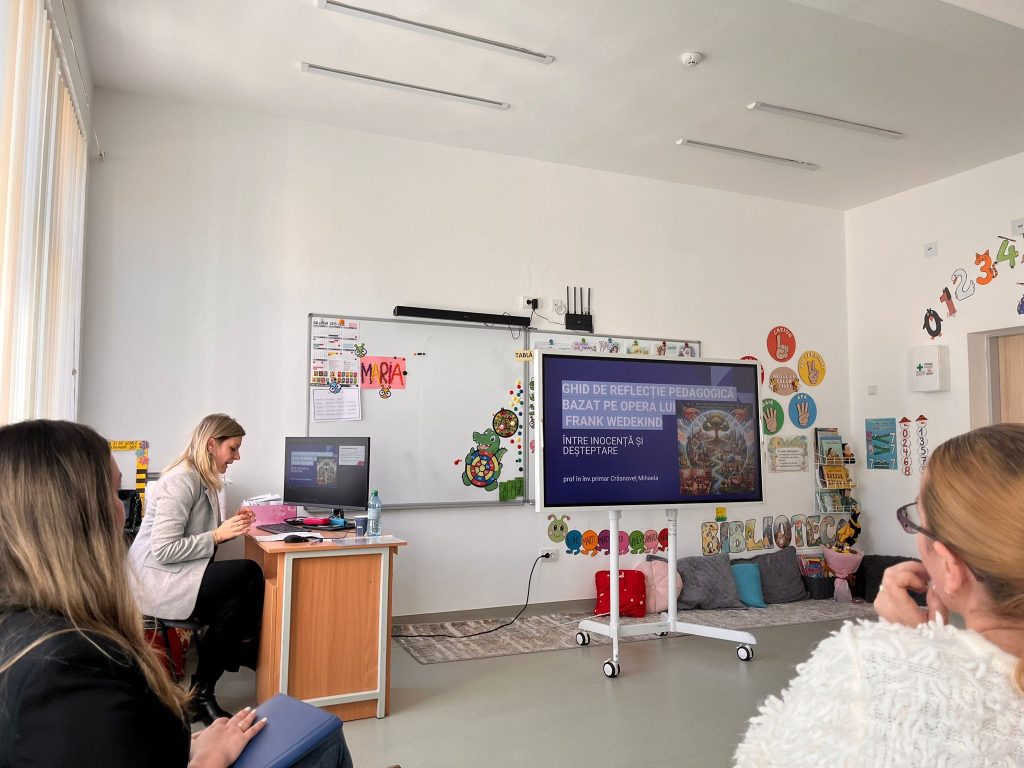 Prof. Mihaela Crăsnoveț a abordat tema „Valențe digitale în formarea continuă – De la textul dramatic al secolului XX la ghidul pedagogic bazat pe opera lui Frank Wedekind”, evidențiind modalități moderne de valorificare a conținuturilor literare prin instrumente digitale.