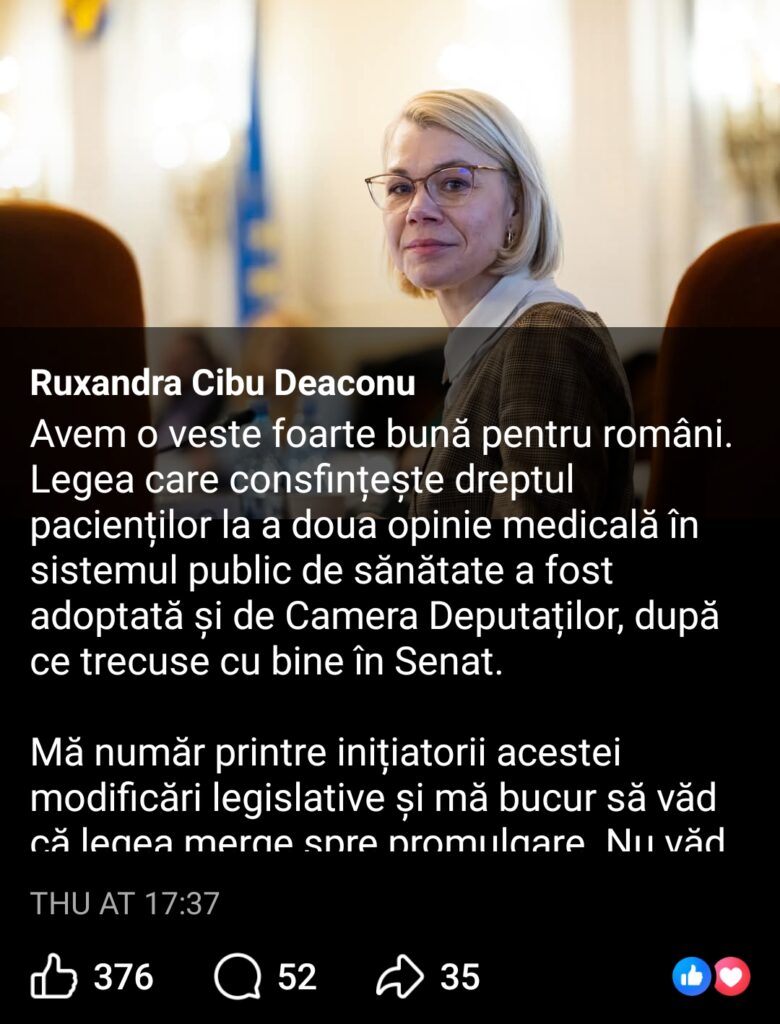 Discuția nu privește conținutul legii, care introduce un drept suplimentar pentru pacienți, ci modul în care este comunicată implicarea politică. Într-un context în care încrederea publică în instituții este fragilă, acuratețea termenilor folosiți – „inițiator”, „co-inițiator”, „semnatar” sau „susținător” – devine esențială.