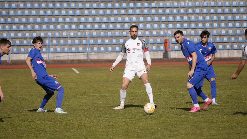 Călăreții roșii au câștigat cu 3-2. Golurile sibienilor au fost marcate de Cosmin Bucuroiu, Edmond Lenghel și Alexandru Luca.