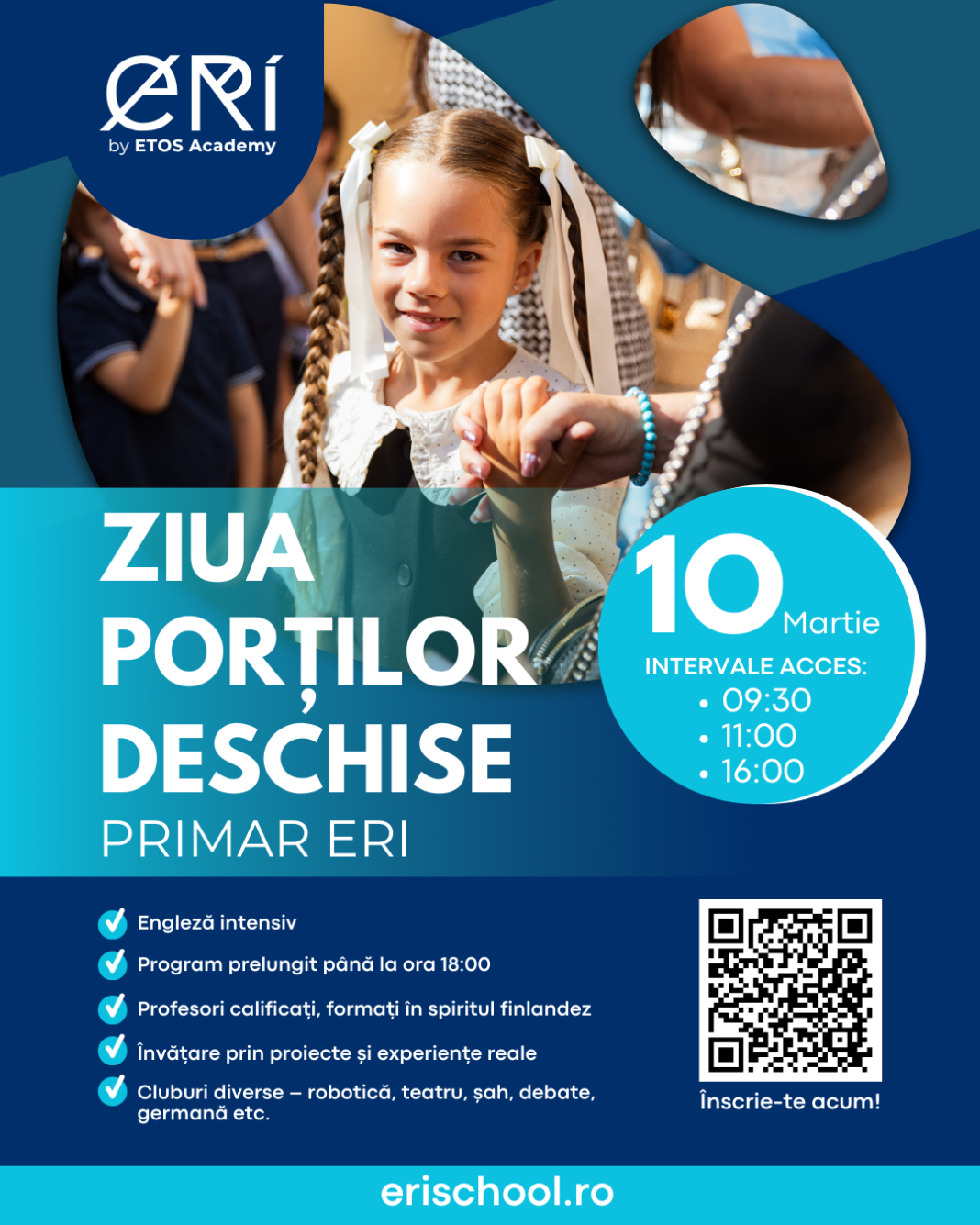 Nivel Primar ERI: În data de 10 martie între orele: 09:30, 11:00 sau 16:00