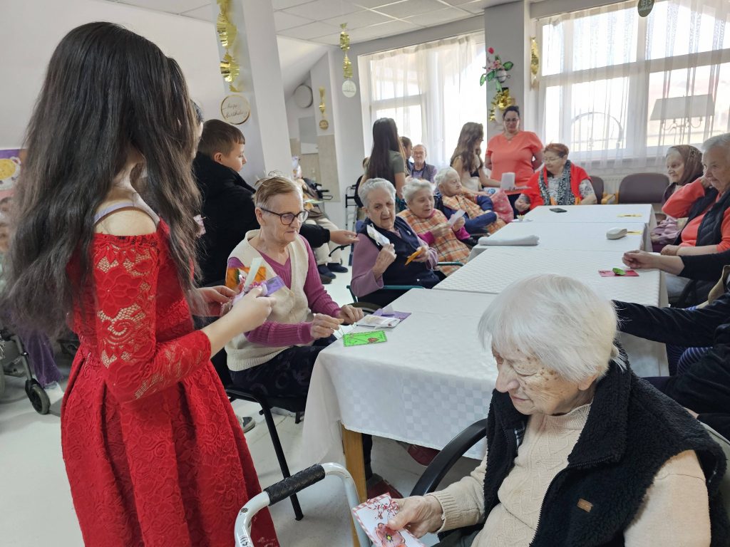 Cu multă dăruire, copiii au oferit mărțișoare confecționate chiar de ei, la școală, atât bunicuțelor, cât și angajatelor instituției. Gestul lor, simplu și sincer, a fost primit cu emoție și recunoștință de către beneficiarii centrului.