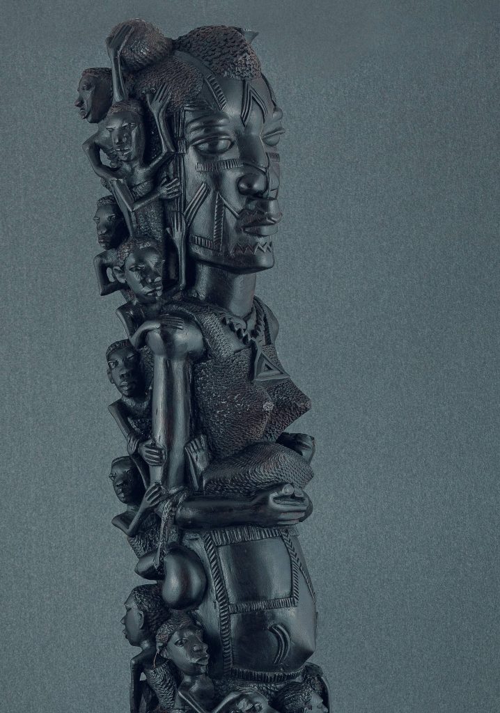 Totemul din abanos cântărește aproape 12 kilograme și are aproximativ 94 de centimetri înălțime. Personajele sculptate cu migală sugerează ideea de solidaritate și interdependență, reflectând modul în care comunitățile Makonde își exprimă genealogia prin filiația feminină.