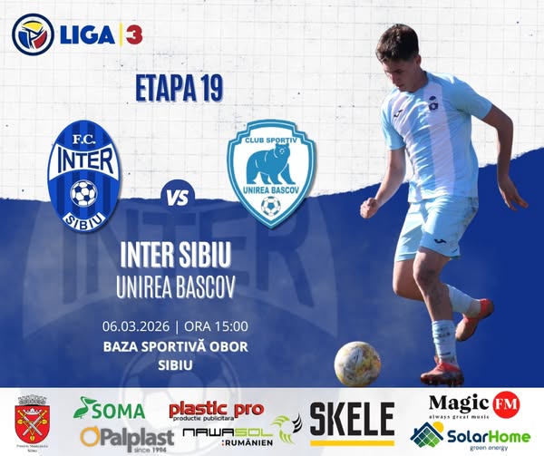 Liga a III-a programează în etapa a 19-a partida dintre Inter Sibiu și Unirea Bascov. Meciul se va disputa vineri, de la ora 15:00, pe terenul sibienilor, la Baza sportivă „Obor”.