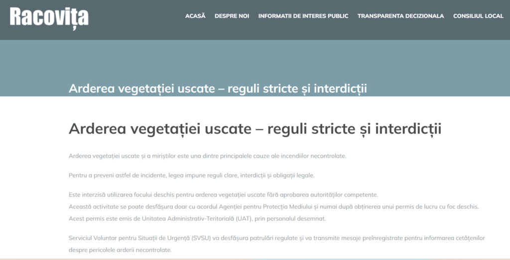 În paralel însă, mai multe primării și servicii voluntare pentru situații de urgență din țară publică pe site-urile lor reguli privind arderea vegetației uscate.