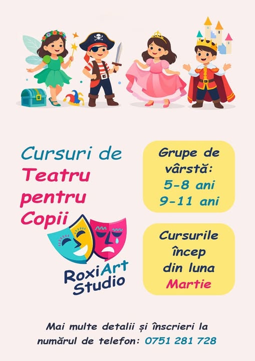Copiii din comuna Șeica Mare au ocazia să participe la cursuri de teatru dedicate dezvoltării creativității și încrederii în sine. Roxi Art Studio anunță deschiderea înscrierilor pentru două noi grupe de copii, cu începere din 11 martie, cursurile urmând să se desfășoare la Grădinița din Calvaser.
