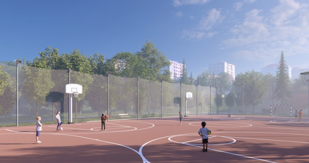 - un teren de sport multifuncțional de 968 mp și două terenuri de tenis