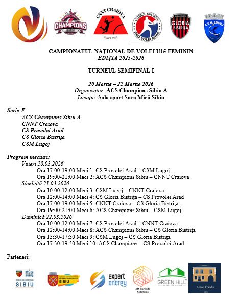 În perioada 20–22 martie, sala de sport din Șura Mică găzduiește meciurile din semifinala 1 a Campionatului Național U15 feminin, iar ACS Champions Sibiu A este una dintre echipele care luptă pentru calificarea mai departe.