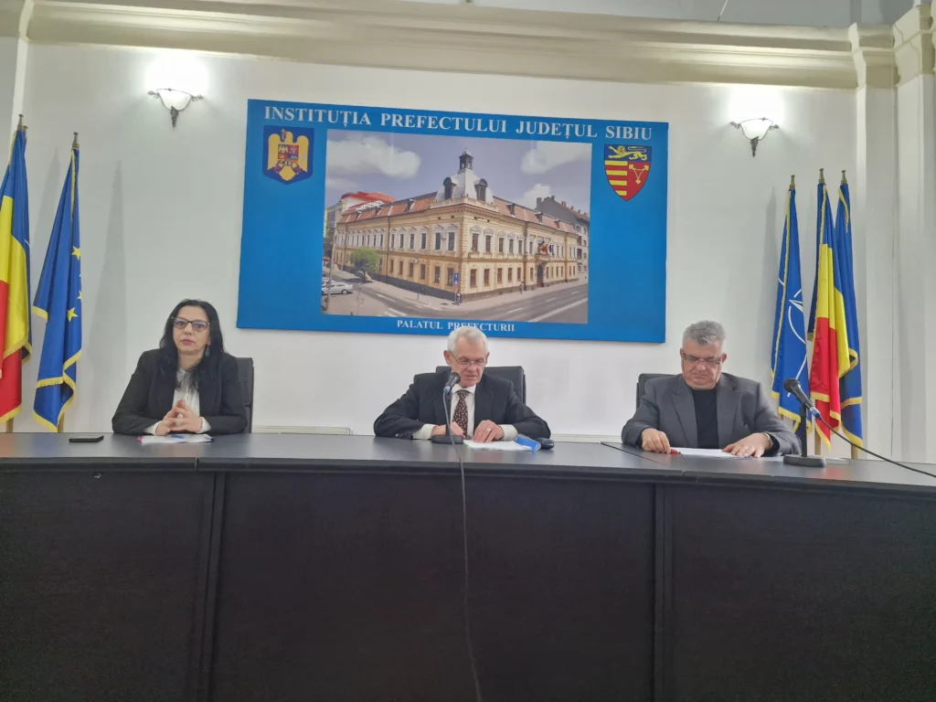 Ședința lunară a Colegiului Prefectural al județului Sibiu din 2026 a avut loc ieri,31 martie, sub conducerea prefectului Mircea Dorin Crețu, în prezența subprefectului Andra Albu, a secretarului general Marius Olteanu și a reprezentanților serviciilor publice deconcentrate.