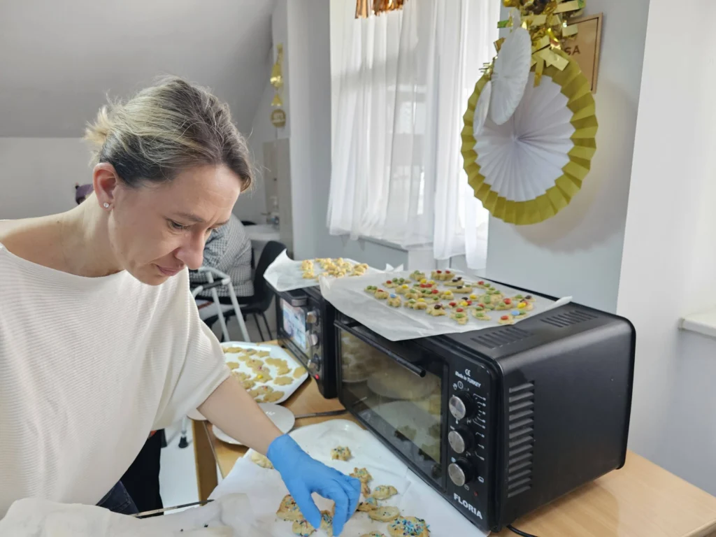 Cei mici au venit pregătiți ca niște adevărați patiseri: au adus minicuptoare electrice, aluat pregătit, sucitoare, forme, tăvi și decorațiuni dulci. Împreună cu bunicii, au frământat, au întins aluatul, au decupat forme și au decorat biscuiți, transformând întreaga activitate într-un atelier intergenerațional plin de voie bună.