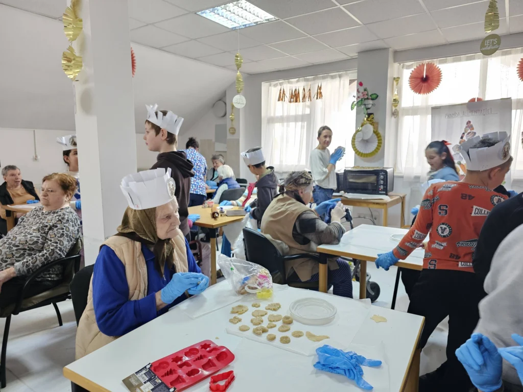 Aromele îmbietoare care au umplut încăperile au fost acompaniate de râsete, cântece și povești. Copiii le-au vorbit seniorilor despre alimentația sănătoasă și piramida alimentelor, în timp ce bunicii au rememorat rețete și tradiții din tinerețe.