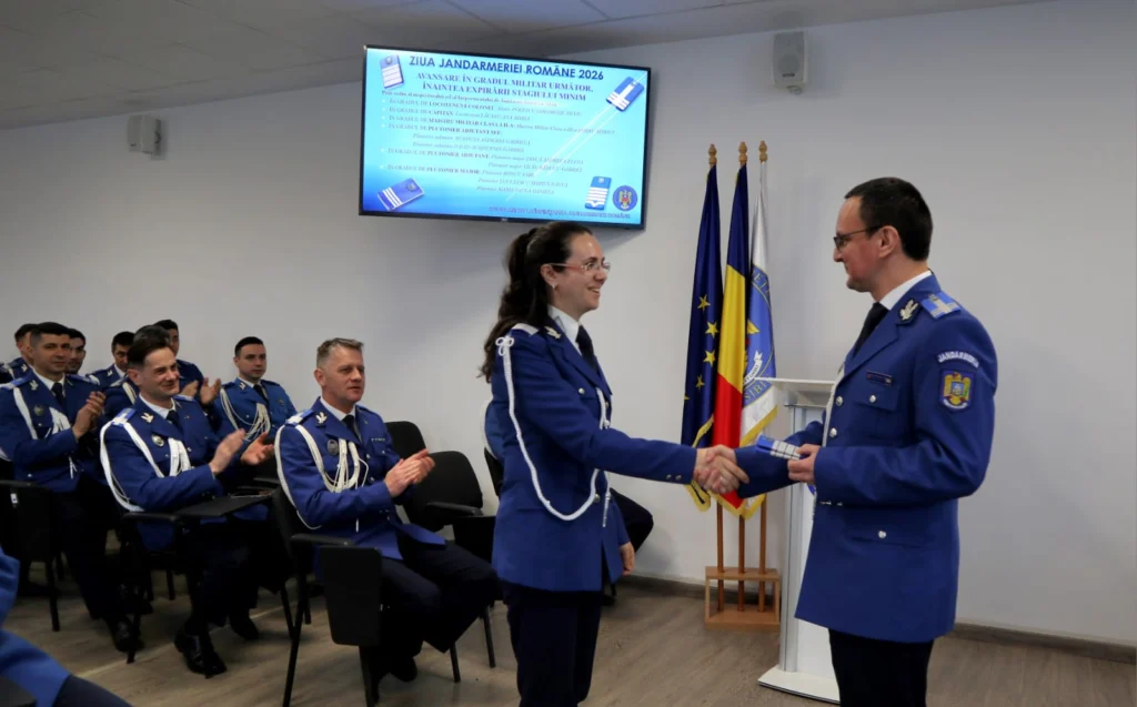 Jandarmeria Română marchează astăzi, 3 aprilie, 176 de ani de existență dedicată ordinii publice. Pentru a marca sărbătoarea, la sediul Inspectoratului de Jandarmi Județean Sibiu, au avut loc avansări în grad și ceremonii festive.