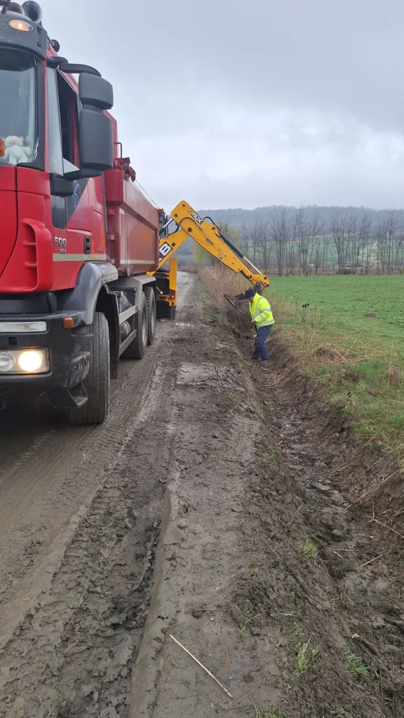 În paralel, echipele intervin pentru curățirea șanțurilor și rigolelor pe DJ 141 (Bârghiș), dar și pentru întreținerea platformei drumurilor prin utilizarea periei mecanice pe DJ 106 și DJ 141. Alte lucrări vizează săpături mecanizate de șanțuri în zona Șeica Mare, cosirea vegetației pe DJ 106 (ieșire Sibiu) și lucrări complexe de întreținere pe DJ 105G, între barajul Racovița și Tălmaciu.