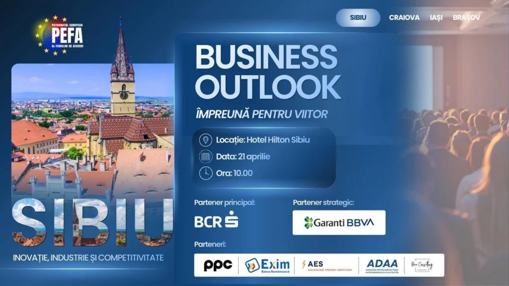 Sibiul găzduiește pe 21 aprilie 2026 prima conferință din seria „Business Outlook 2026 – Dialoguri regionale pentru viitorul mediului de afaceri”, o inițiativă strategică lansată de Patronatul European al Femeilor de Afaceri (PEFA), în parteneriat cu Hilton Sibiu. Evenimentul își propune să aducă la aceeași masă antreprenori, autorități locale și instituții financiare, într-un context economic marcat de transformări accelerate și provocări globale.