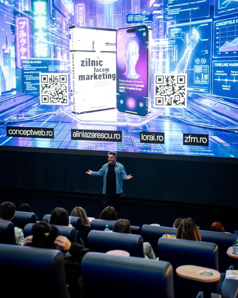 Într-o atmosferă electrizantă, demnă de o premieră de la Hollywood, zeci de antreprenori și specialiști în marketing s-au reunit pentru un eveniment care marchează un punct de cotitură în peisajul de business din România. Alin Lăzărescu, fondatorul agenției Concept Web Agency, a prezentat oficial sistemul de inteligență artificială LORAI și a lansat volumul „Zilnic Facem Marketing”, un manual de supraviețuire și scalare pentru era digitală.