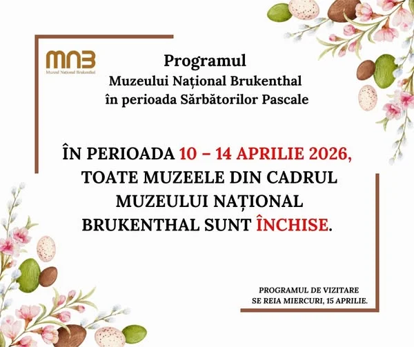 Potrivit anunțului oficial, toate instituțiile aflate în subordinea muzeului vor fi închise în perioada 10 – 14 aprilie 2026. Măsura se aplică tuturor spațiilor muzeale, inclusiv Palatului Brukenthal, Muzeului de Istorie, Muzeului de Istorie Naturală și celorlalte secții.
