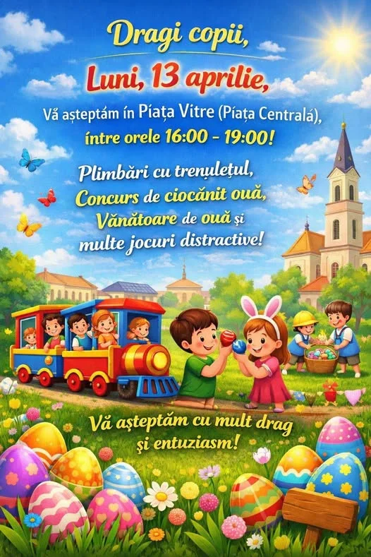 Potrivit organizatorilor, cei mici vor avea ocazia să se bucure de o plimbare cu trenulețul, dar și de o serie de activități recreative pregătite special pentru ei. Printre acestea se numără concursul de ciocănit ouă, o vânătoare de ouă cu provocări și jocuri interactive menite să aducă zâmbete și momente frumoase alături de prieteni.