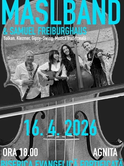Primăria Orașului Agnita anunță organizarea unui eveniment cultural deosebit, dedicat iubitorilor de muzică tradițională și reinterpretări moderne. Astfel, joi, 16 aprilie 2026, începând cu ora 18:00, Biserica Evanghelică C.A. din Agnita va găzdui un concert susținut de formația MASLBAND, alături de invitatul special Samuel Freiburghaus.