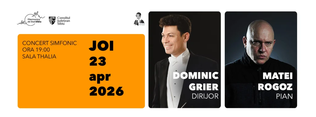 Filarmonica de Stat Sibiu propune publicului, joi, 23 aprilie, de la ora 19:00, la Sala Thalia, un concert dedicat romantismului european, sub bagheta dirijorului Dominic Grier, avându-l ca solist pe pianistul Matei Rogoz.