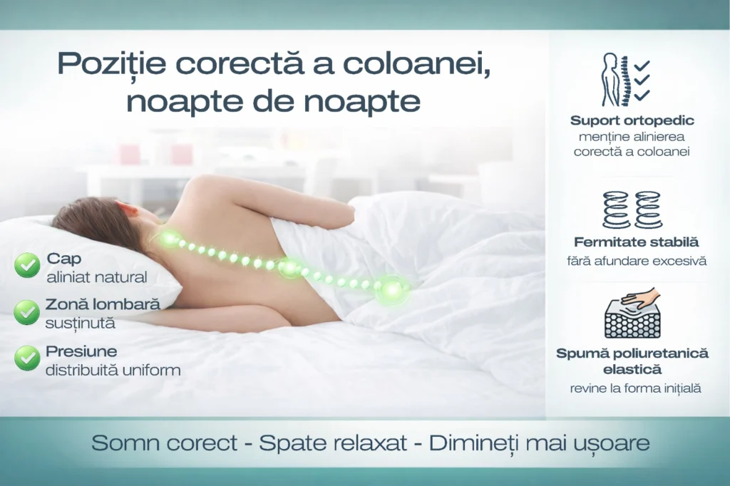 Este o alegere excelentă pentru persoanele care dorm pe o parte sau care se confruntă cu disconfort la nivelul umerilor și șoldurilor.