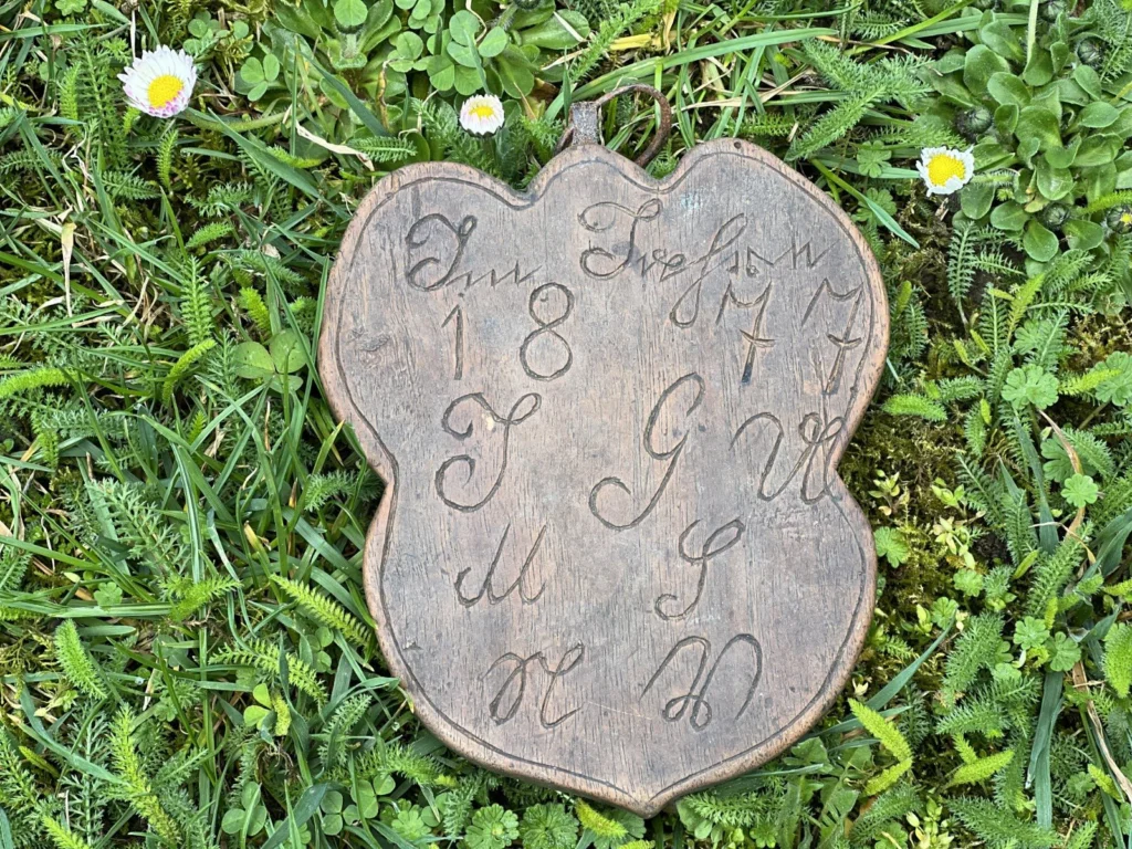 În mână ține o plăcuță de vecinătate, confecționată din lemn, pe suprafața căreia este încrustat anul 1877 și diferite inițiale. De altfel, în ladă sunt mai multe astfel de plăcuțe, cu ani diferiți. „Timp de sute de ani, sașii au folosit aceste plăcuțe pentru a comunica între membrii comunității. Sistemul era simplu și eficient: liderul mergea la un membru, îi transmitea mesajul pentru ceilalți, cum ar fi convocarea pentru coasă sau săparea unei fundații, și îi dădea plăcuța. Acesta o transmitea mai departe, împreună cu mesajul. Astfel, mesajul și plăcuța ajungeau la toți membrii vecinătății și nimeni nu putea spune că nu a fost înștiințat sau să întrerupă firul comunicării.”